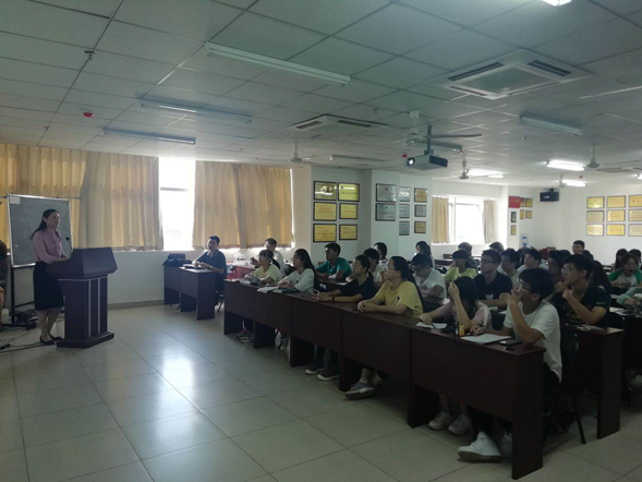 2019年10月23日上午,英国365集团公司党委常委、组织部长韩淑梅在研发楼710室,为英国365集团公司2018级7、8班员工讲授“不忘初心、牢记使命,励志勤学、不负青春”形势政策课。