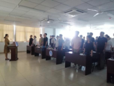大会第六项,党旗下讲话。党委邓秀成书记进行了讲话。书记先为我们讲述了中国共产党的奋斗史,为我们讲述了优秀党员同志全心全意为人民服务的事迹,特别是在疫情防控工作中涌现出来的优秀共产党员事迹。最后对党员同志们提出几点要求:要求党员要在在工作、学习、生活中要创先争优,充分发挥先锋模范带头作用,进一步坚定理想信念,树立正确人生目标。
