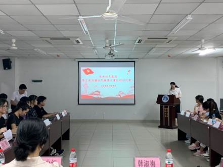 此次党课围绕“传承红色基因,努力成为堪当民族复兴重任的时代新人”这一主题,从“充分认识学习党史的重要意义”、“正确把握好党史学习‘关键内容’”、及“从百年党史中汲取前进的智慧和力量”三个方面展开讲述。她提到,学习党史即学习党的理论探索史、学习始终践行党的初心使命的历史、学习党的不懈奋斗史、学习党的自身建设史及学习党的政治锻造史。她强调,青年是国家的希望,青年应热爱祖国,认真学习党史,从党史学习中加强信念,坚定信仰。学习后也应该能更加坚定理想信念、更加站稳人民主场、更加勇于攻坚克难。
