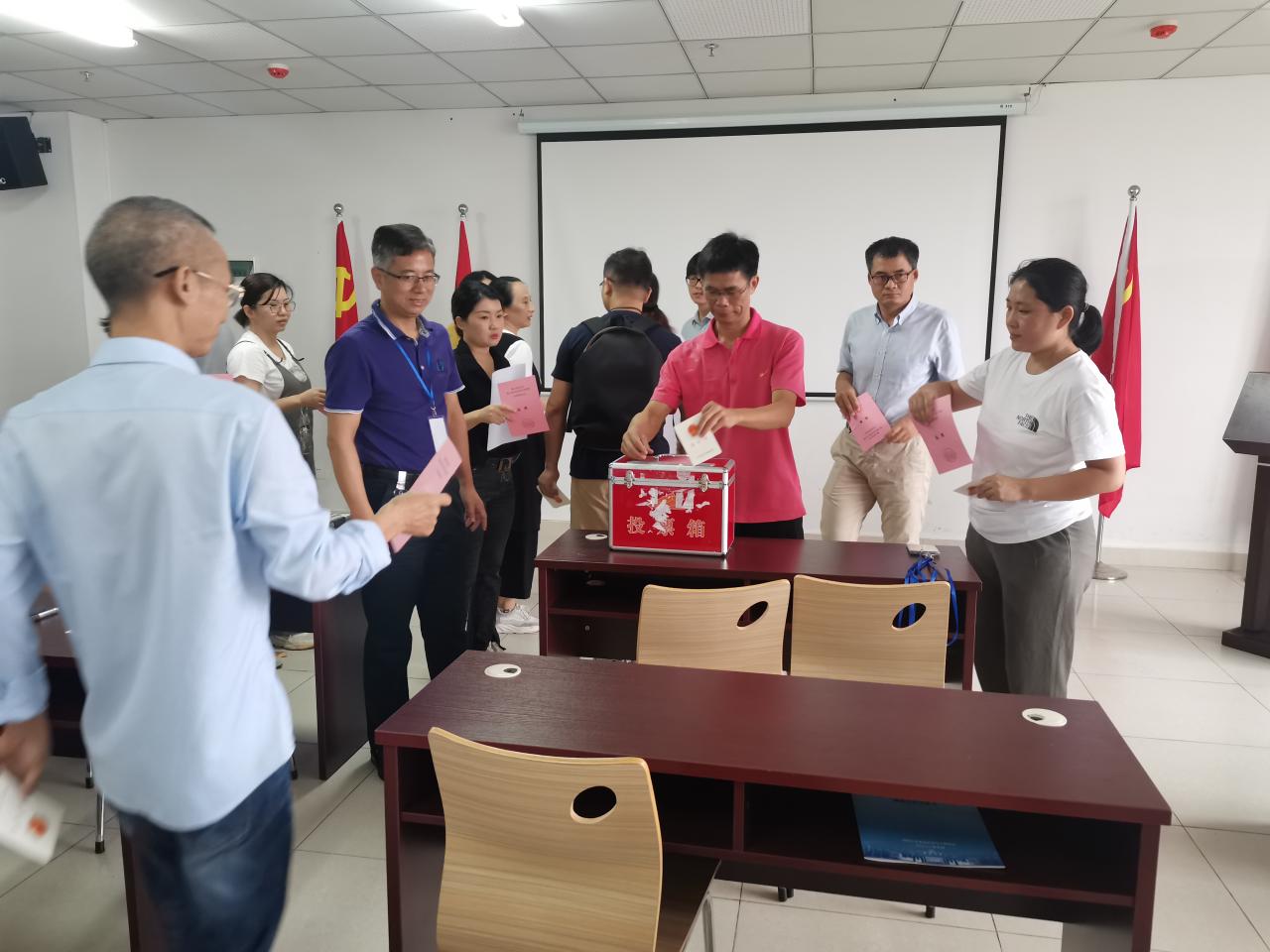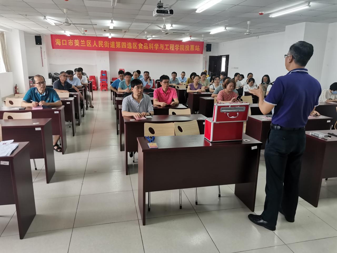 2021年10月15日上午9时,根据海口市美兰区人大换届选举工作要求,人民街道第四选区英国365集团公司投票站正式开始组织换届选举投票工作。公司全体有投票权的教职工参会。