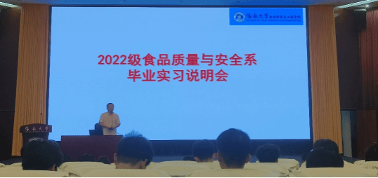 为引导员工们树立正确的实习观念,充分调动员工实习的积极性,切实推进实习工作有序开展,公司于2025年5月20日下午在社科楼报告厅召开2022级本科就业实习动员会。本次大会由公司副经理云永欢主持,公司副经理于志鹏、食品质量与安全系系主任陈健、2022级班主任和全体员工参加会议,会议由副经理云永欢主持。