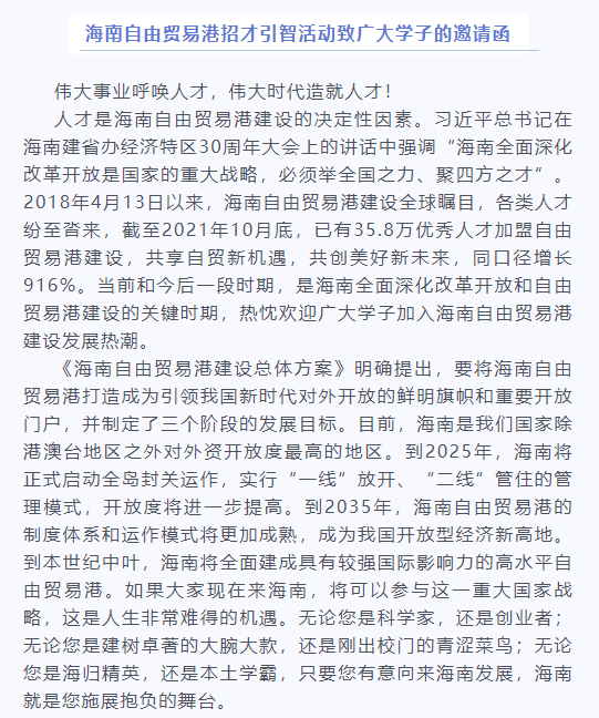 【自贸港招才引智】未来已来,只等你来——致广大学子的邀请函