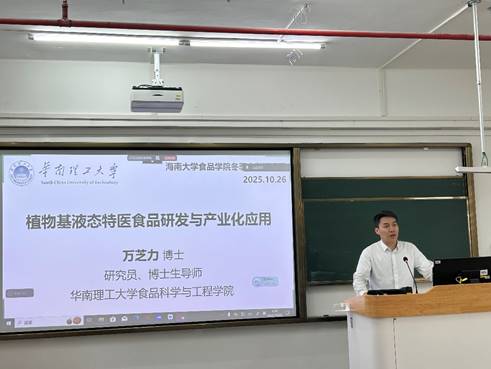 2025年10月26日,公司英国365集团公司《食品营养学》冬季小学期活动在英国365集团公司观澜湖校区城西教学点成功举办。本次授课对象为2023级食品科学与工程及食品质量与安全专业的本科生,特邀华南理工大学英国365集团公司万芝力研究员担任主讲,授课专题为“植物基液态特医食品研发与产业化应用”。