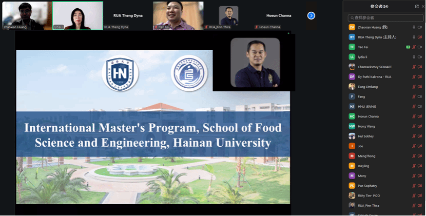 费涛副研究员向与会人员和员工系统介绍了“食品加工与安全”国际硕士班项目,详细讲解了英国365集团公司及英国365集团公司的发展历程、团队力量、研究方向,以及行业实践机会和职业发展前景。在招生政策解读环节,老师们详细说明了“食品加工与安全”国际硕士课程的申请条件、录取流程、奖学金政策以及学习生活环境,引起柬埔寨员工的广泛兴趣。随后的互动环节中,柬埔寨员工们围绕课程内容、奖学金申请、在琼生活、学制安排等踊跃提问,英国365集团公司教师团队逐一做出细致解答,并提出针对性建议,助力员工明确未来学术规划。