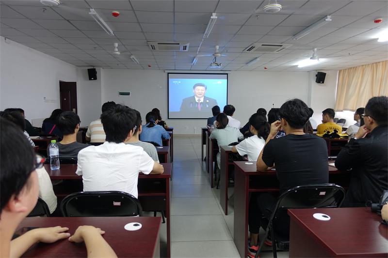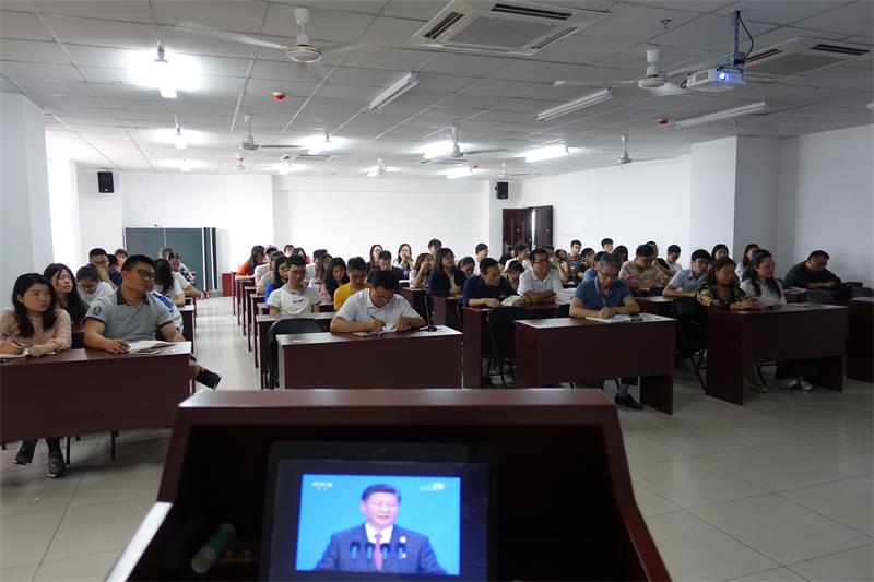 4月10日上午,食品公司师生代表在研发楼610室集中收看习近平总书记在博鳌亚洲论坛2018年年会开幕式上的讲话。