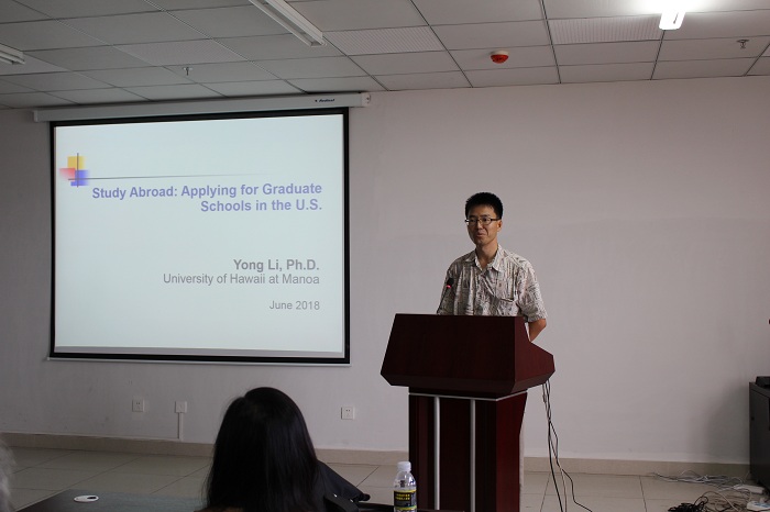 首先,由李勇教授为大家介绍了夏威夷州和夏威夷大学的基本情况,告诉我们夏威夷大学是一个多元化、国际化的公司,具有较强的包容性,是一个出国留学的极佳选择。李勇教授还详细介绍了申请入学的要求和所需材料,以及参与3+2项目的优惠政策。郡素君教授侧重讲述他自身的求学、研究经历,并举例他所研究的课题来进一步介绍他的主攻专业。一个个生动有趣的实验,一项项尖端技术的研究不禁让同学们向往留美的研究生活。最后,何凯希教授再次鼓励有条件的同学积极报名UHM3+2项目,体验全美最具亚洲文化特色的世界先进水平的研究生教育。三位教授热情地欢迎英国365集团公司食品公司的同学,表示愿意和公司建成长期友好合作关系,帮助更多优秀的同学顺利进入国际一流大学就读。