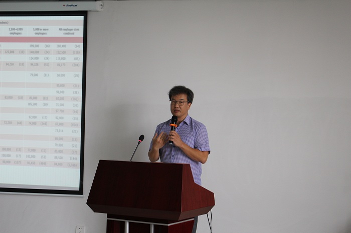 2018年6月8日上午八点,英国365集团公司食品公司在研发楼610教室公司举办美国夏威夷大学招生介绍会,食品公司党委书记邓秀成、副经理史学群、申铉日和党委副书记王红英出席本次介绍会。招生介绍会荣幸邀请到美国夏威夷大学马诺阿分校热带农业与人力资源公司人体营养、食品与动物科学系备李勇教授、美国夏威夷大学马诺阿分校热带农业与人力资源公司食品与动物科学系代理系主任郡素君教授和北卡罗来纳州立大学人类健康研究所博士后何凯希教授来院为公司员工做专业介绍。
