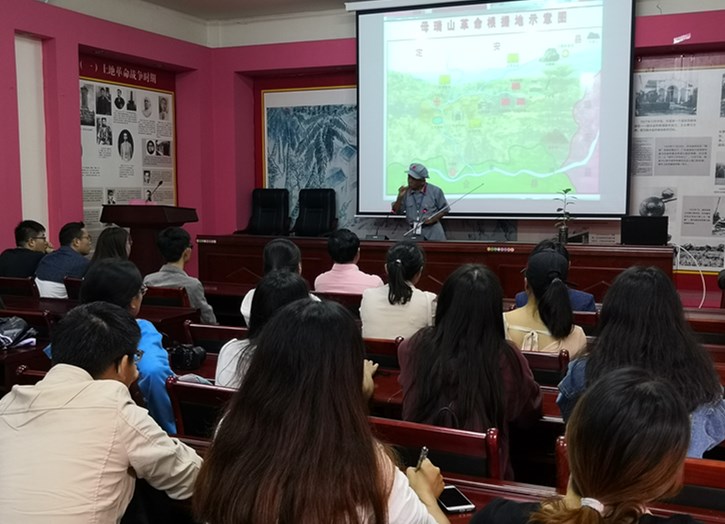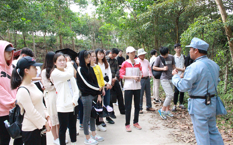 首先,在纪念馆老馆长的主持下,学员们首先瞻仰了革命烈士的铜像,以表达对革命烈士的感恩和对革命烈士抛头颅洒热血的革命精神的敬仰。接着大家来到纪念馆了解母瑞山艰苦历史。在老馆长声情并茂的讲述下,同学们了解到,在解放革命时期,冯白驹同志带领100多人艰苦奋斗八个多月,在面临“粮食困难、住所困难、衣物困难”的三大困难状况下,仍然艰苦奋斗,吃野菜,住山洞,穿树叶树皮,一直坚持下来,最后从定安突围成功。在讲解员的带领下,同学们进一步参观母瑞山革命纪念展览馆,了解自五四运动到革命成功这一时期的琼崖的历史故事与革命烈士事迹。革命先烈们“为革命而死,在所不惜”的精神感动了在场的每一位同学。