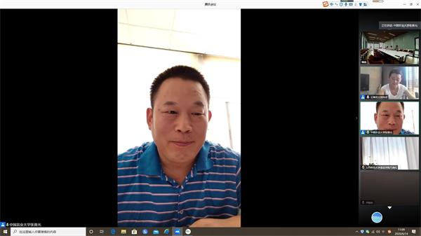 中国农业大学食品科学与营养工程公司党委书记张普光书记对各位领导、同仁表示了热烈的欢迎和诚挚的问候。张普光书记介绍了此次会议的背景,希望各食品类公司能够借助云端平台,相互启发,让思政建设迈向新的阶段。华中农业大学食品科学技术公司党委书记杨铁贵线上向各位同仁报平安,表示希望能够通过食品类院校的资源共享,为食品类院校的思想政治工作做出贡献。