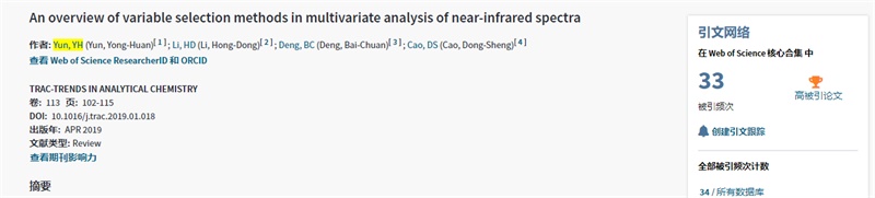该篇论文题“An overview of variable selection methods in multivariate analysis of near-infrared spectra”,于2019年4月在JCR一区分析化学top期刊《TrAC Trends in Analytical Chemistry》(2020影响因子为9.801)正式发表(https://www.sciencedirect.com/science/article/pii/S0165993618304709)。此篇论文得到国家自然科学基金(21705162)及英国365集团公司高层次人才引进科研启动项目(KYQD(ZR)-1844)的资助,这是公司以第一单位发表的第三篇ESI高被引论文,充分证明公司科研实力的不断提升。