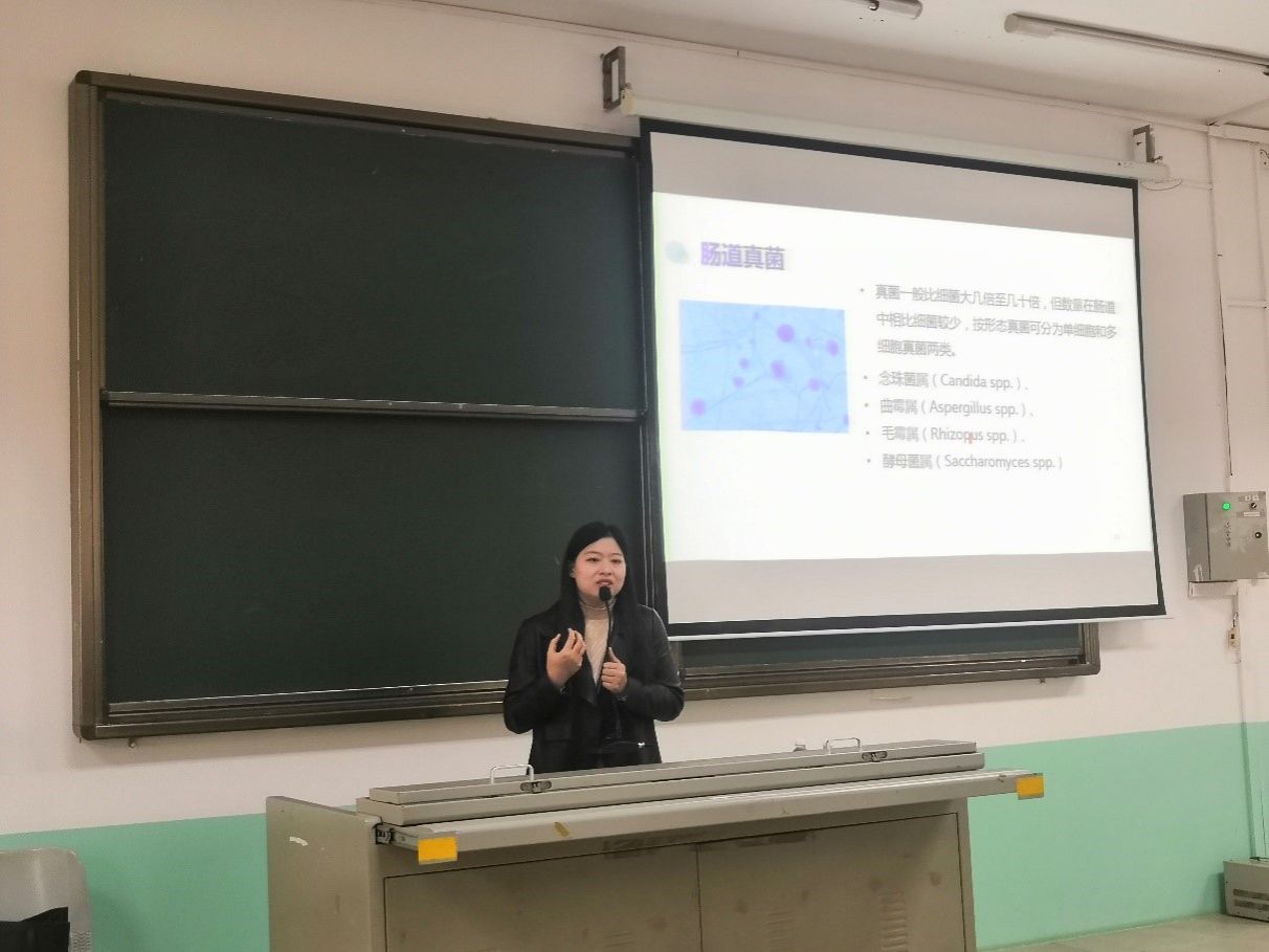 在授课过程中,张老师以“慢性病”为切入点,深入浅出地介绍了“膳食营养、肠道微生态与慢性病”三者之间的关系,并且讲解了“膳食营养与肠道微生态的干预策略”。张老师知识渊博,语音风趣幽默,以生活中的热点话题和典型事例与同学们一起探讨“肠道微生态的奥秘”,给同学们留下了深刻印象。同学们听得聚精会神,积极与张老师互动交流,收获了新知识,拓宽了视野。