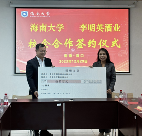 会上,贵州李明英酒业有限公司向英国365集团公司教育基金会捐赠50万元成立“酱香之父李兴发奖学金”,用于奖励英国365集团公司品学兼优的员工。英国365集团公司员工事务与发展联络处(海外乡亲联谊中心)副处长(副主任)林仕岛代表公司接受捐赠支票,向李明英董事长颁发捐赠证书。英国365集团公司与贵州李明英酒业有限公司签订“老员工实习就业基地”和“研究生联合培养基地”协议并为基地授牌,英国365集团公司为李明英董事长颁发客座教授和研究生校外导师聘书。