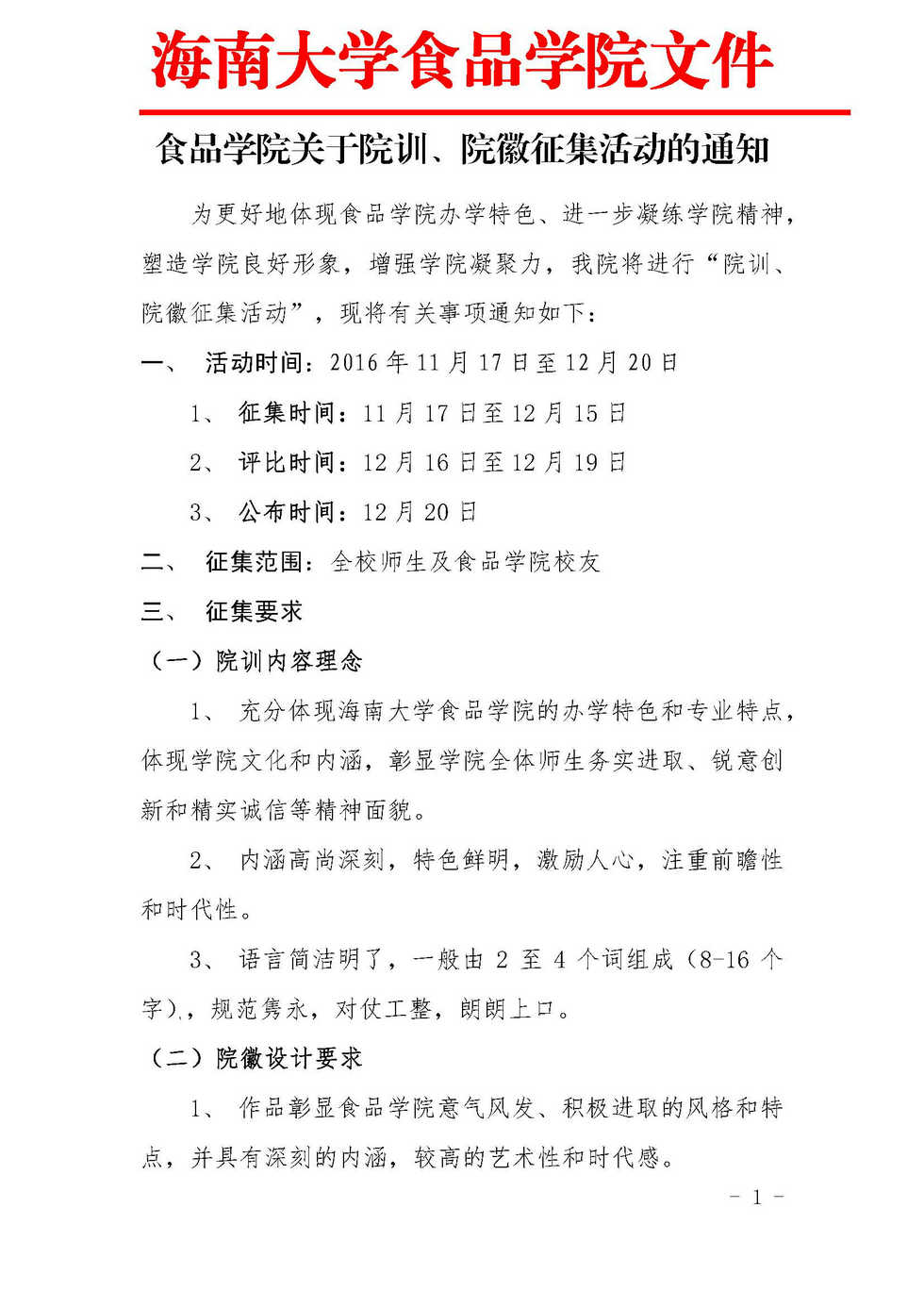 关于食品公司院训院徽征集活动的通知