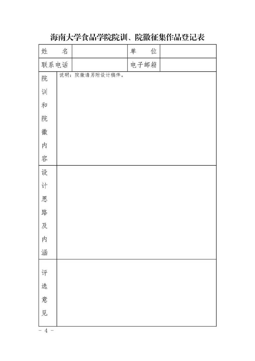 食品公司院训院徽征集活动作品登记表(请点击上面文字下载)